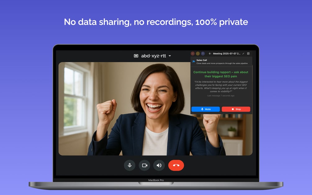 Your meetings stay yours. ClueWing runs entirely on your device—no cloud recording, no data sharing. Just better meetings.